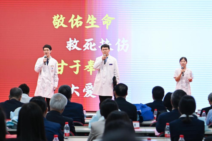 科研与临床以外,邓睿逸还活跃于学生就业与社会施行前线。他担任北大泌尿专博班团支部布告、北大病院学生会学术科创部部长,组织科研交流与学术沙龙,搭建后生医学生成长平台。他以学生代表身份在北大医师节大会、北医授奖仪式上发言,叙述后生医者的成长与就业,激勉更多同学磨练前行。