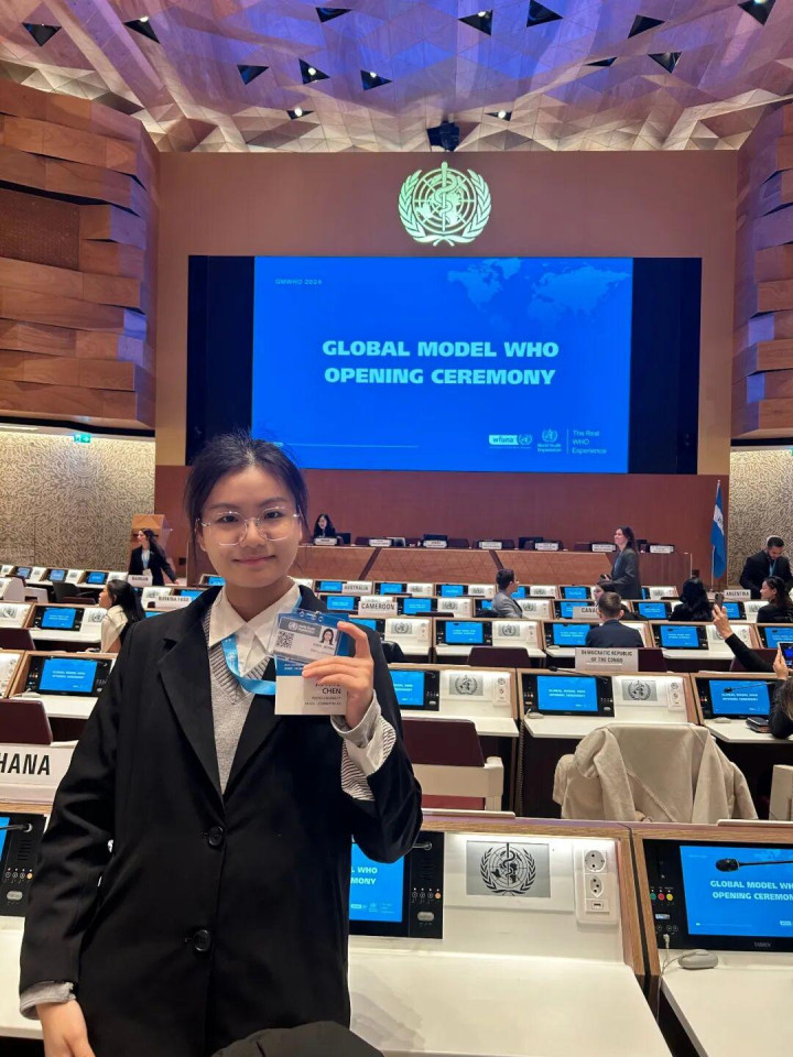 在“模拟世卫大会”上获“最好态度文献奖”,是唯一获奖的中国粹子