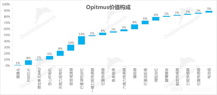如果最终特斯拉能攻克下来,机器东谈主的空间很清醒是比较大的。因此海豚君也进入本篇最为中枢的上游硬件的价值链拆解。这里就以Optimus东谈主形机器东谈主为例。
