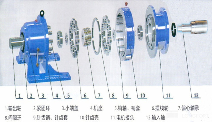 RV延缓器是一种复合结构,传动结构分两级,一级是行星齿轮,一级是摆线针轮。摆线针轮延缓,通过输入轴带动偏心轴(曲柄轴),使摆线轮在针齿轮内既公转又自转(自转转立时为输出转速),从而罢了高传动比。