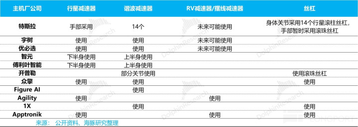 表 主机厂公司身体要津使用延缓器和丝杠的情况